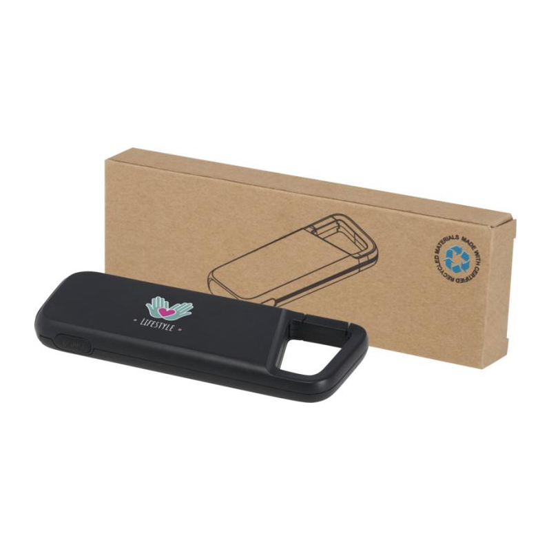 Le modèle Alkes associe performance et durabilité dans un format compact de 5 000 mAh. Conçue en plastique rABS recyclé, elle accompagne les professionnels en déplacement grâce à sa conception étanche et son mousqueton intégré.