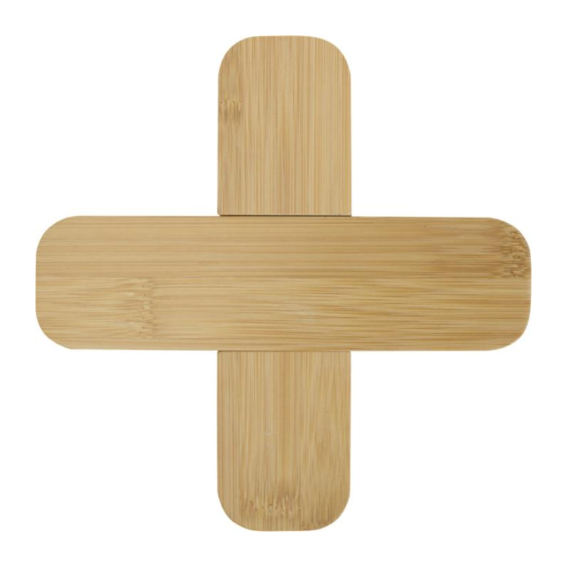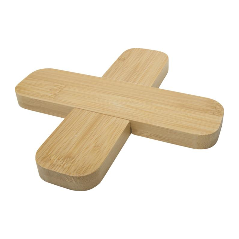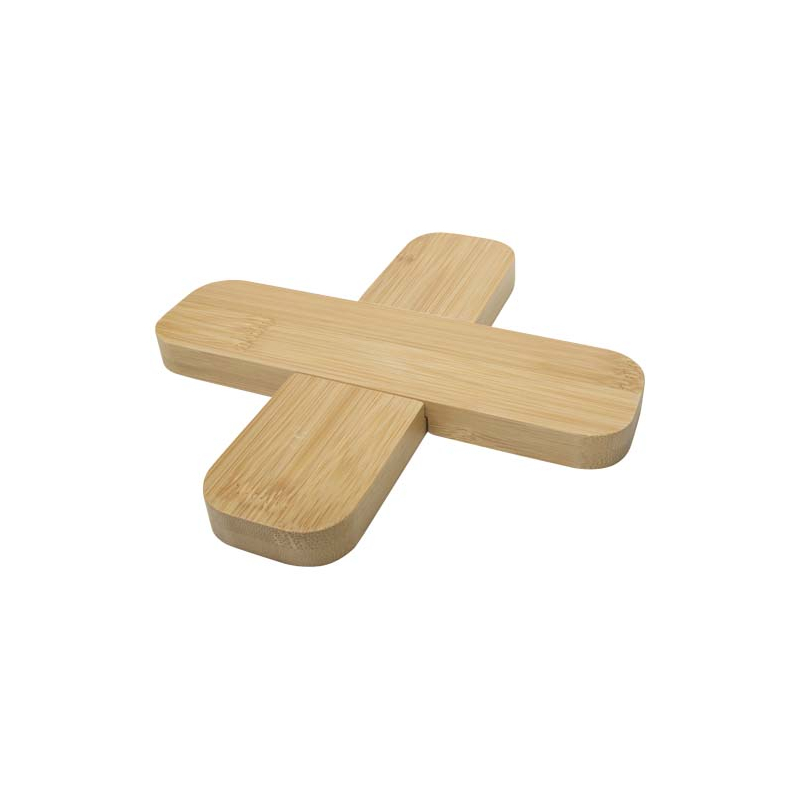 Fabriqué en bambou clair, le modèle Croc grand protège efficacement les plans de travail et les tables des plats ou cocottes de grande taille. Sa forme croisée et ses contours arrondis offrent stabilité et élégance, tout en apportant une touche naturelle et chaleureuse aux espaces de repas collectifs.