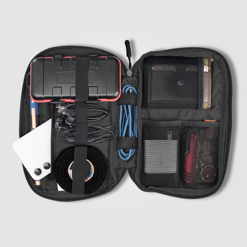 Compacte, fonctionnelle et élégante, elle offre une organisation soignée pour les objets du quotidien : électronique, papeterie ou accessoires de voyage.