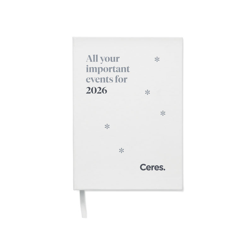 Un agenda A5 publicitaire en papier recyclé conçu pour structurer l’année professionnelle.