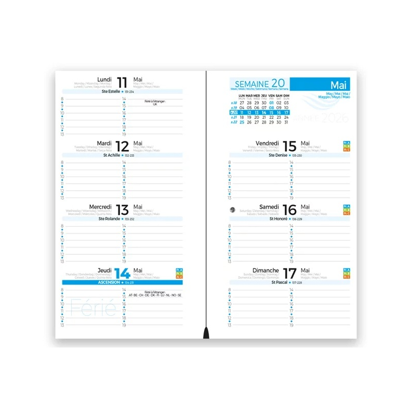 • Grille 13 mois standard en 7 langues, imprimée en quadrichromie.