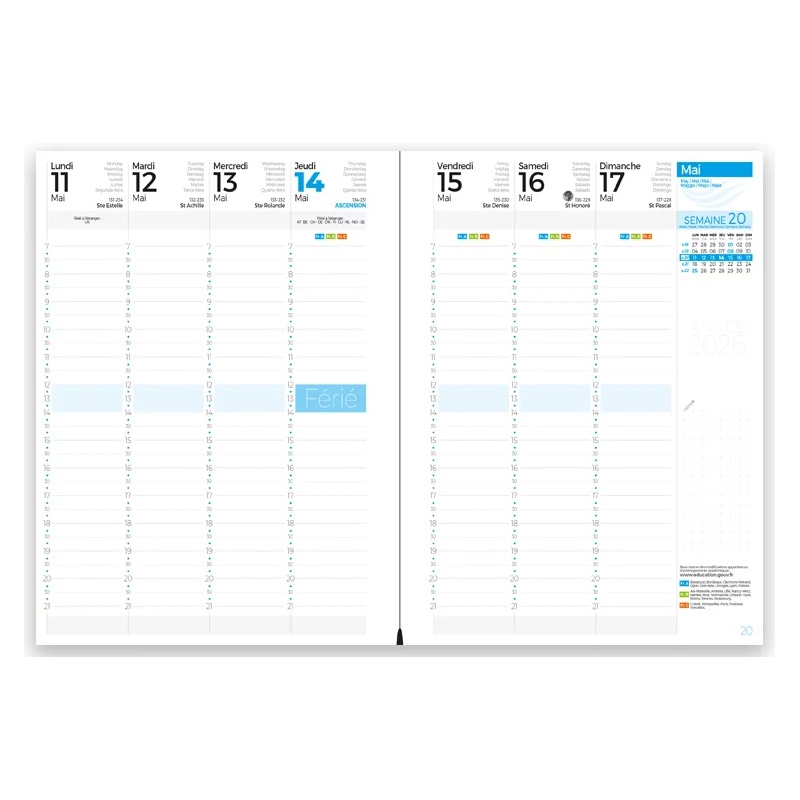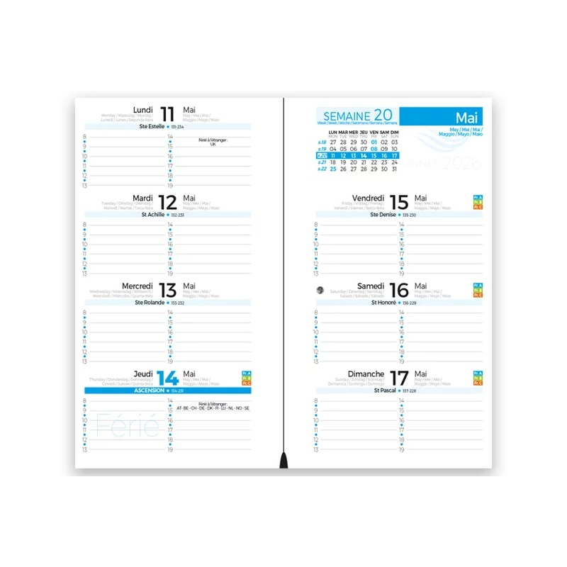 Chaque agenda intègre une grille de 13 mois multilingue, complétée par des pages d’Atlas et des détails pratiques pour un usage quotidien.