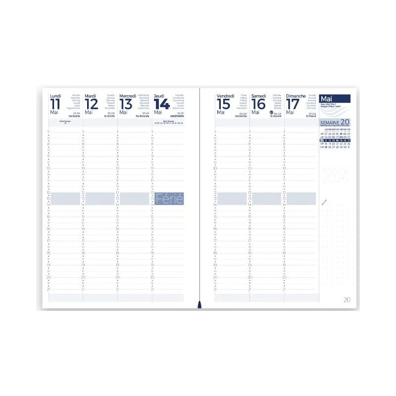 Il comprend une grille multilingue de 13 mois et des pages d’Atlas, avec des finitions pensées pour un confort optimal.