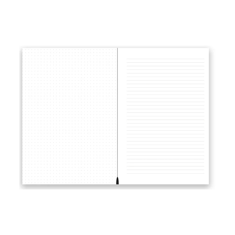 • Côté carnet : pointillés à gauche et lignée à droite, 128 pages.