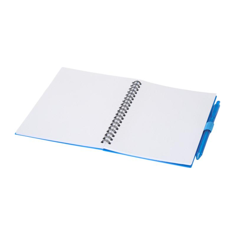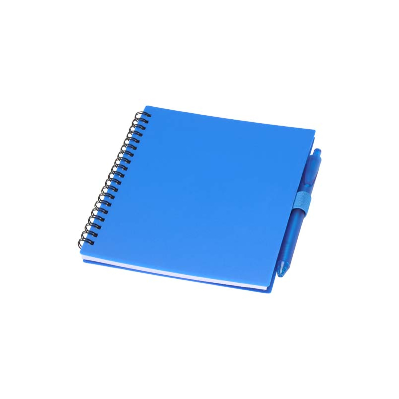 L’ensemble Niove associe un carnet à couverture souple en plastique recyclé à un stylo bille assorti pour accompagner vos bénéficiaires dans leurs prises de notes quotidiennes.