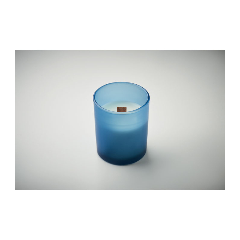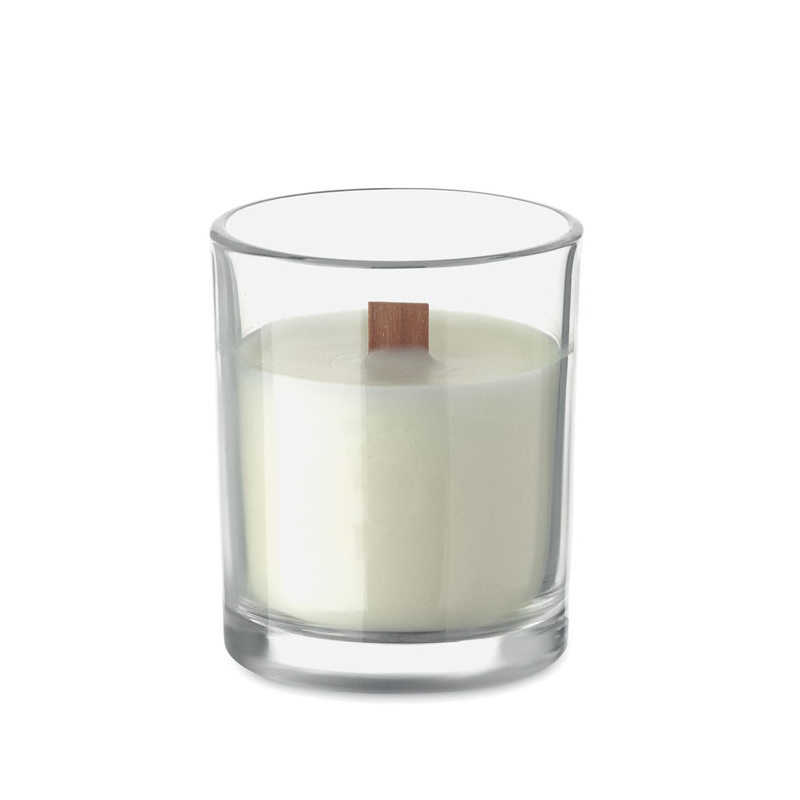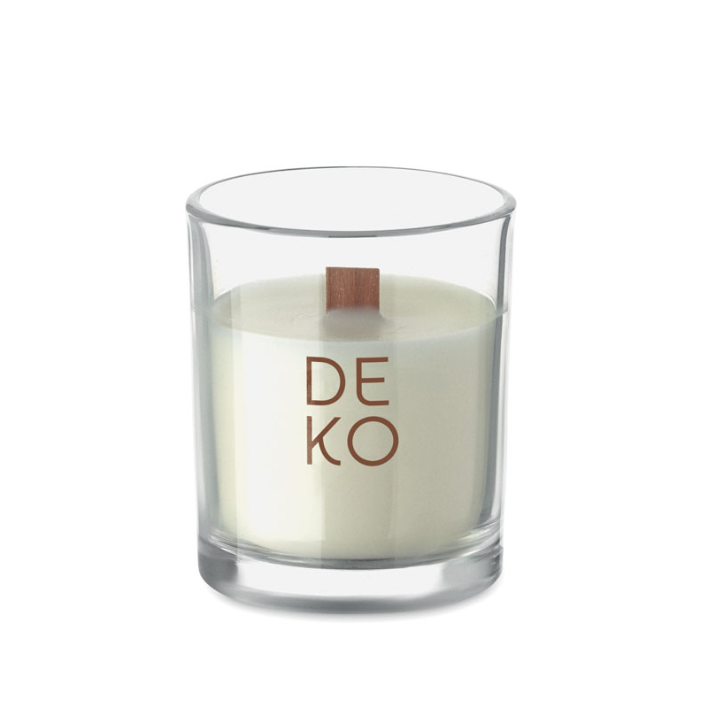 Bougie publicitaire en verre avec mèche bois Kivas Wood