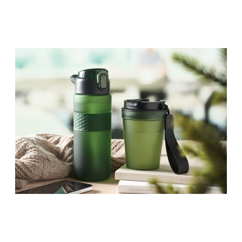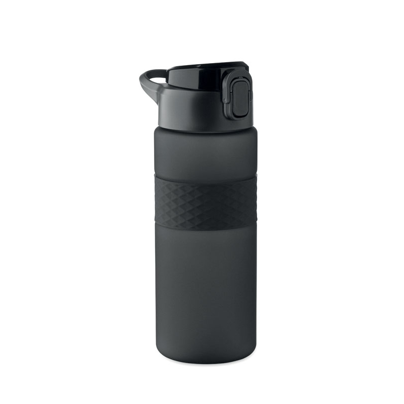 • Gourde en rPET avec poignée en silicone.