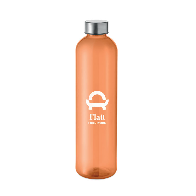 Cette gourde en RPET adopte un format cylindrique de grande contenance, adapté à une hydratation individuelle tout au long de la journée. Sa capacité de 1 litre correspond aux usages observés dans des contextes professionnels ou événementiels nécessitant un volume important.