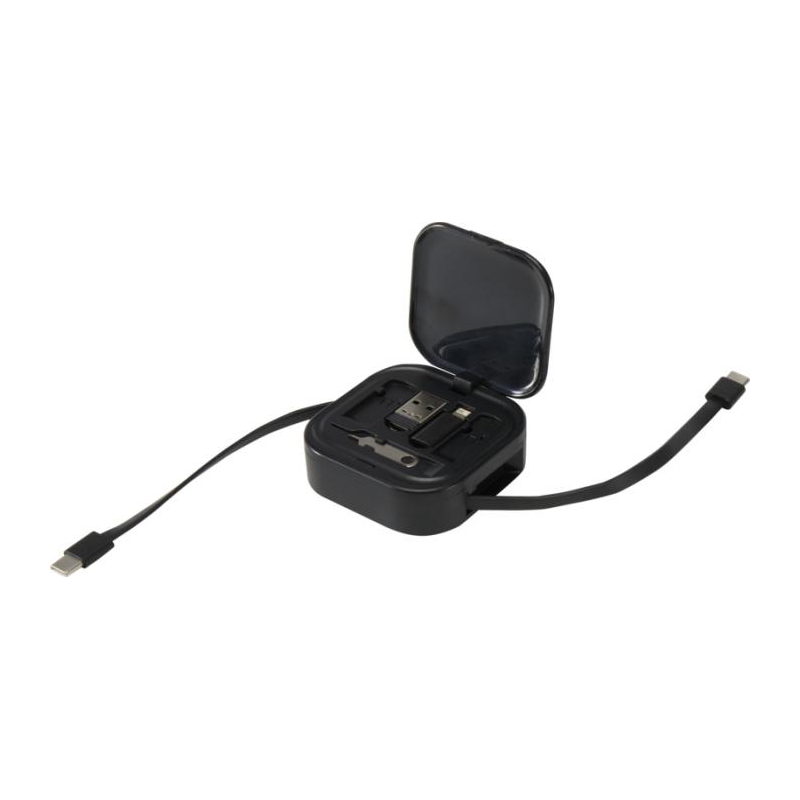 Compact et multifonction, le modèle Gloas associe un câble de charge rapide 5 en 1 à un kit d’accessoires intégrés. Il réunit dans un format réduit plusieurs usages essentiels du quotidien professionnel : recharge, transfert de données et support pour smartphone.