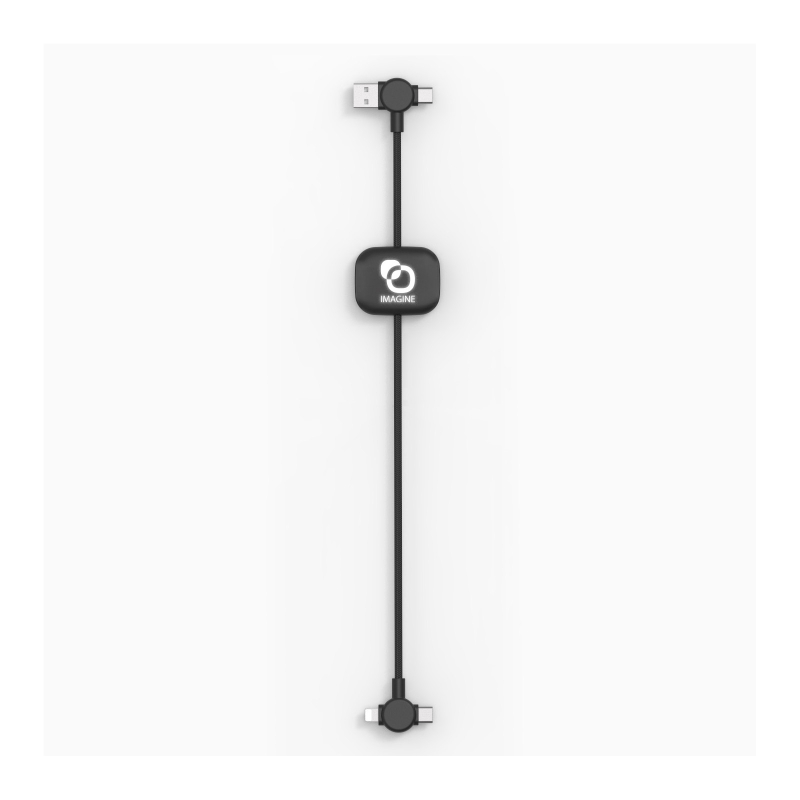 Ses connecteurs multiples répondent aux besoins variés des utilisateurs, tout en offrant un support personnalisable adapté à un objet promotionnel prémium. La gaine tressée et le logo lumineux renforcent la visibilité du message promotionnel, tout en permettant une utilisation polyvalente dans les environnements numériques.