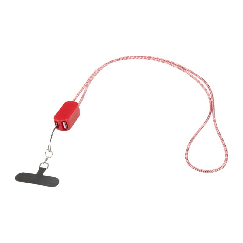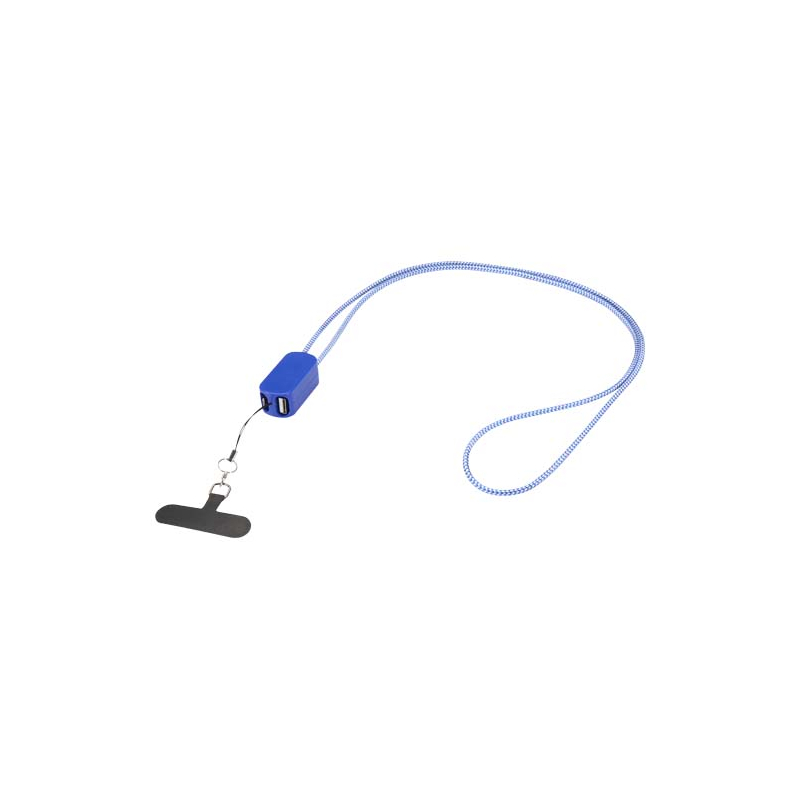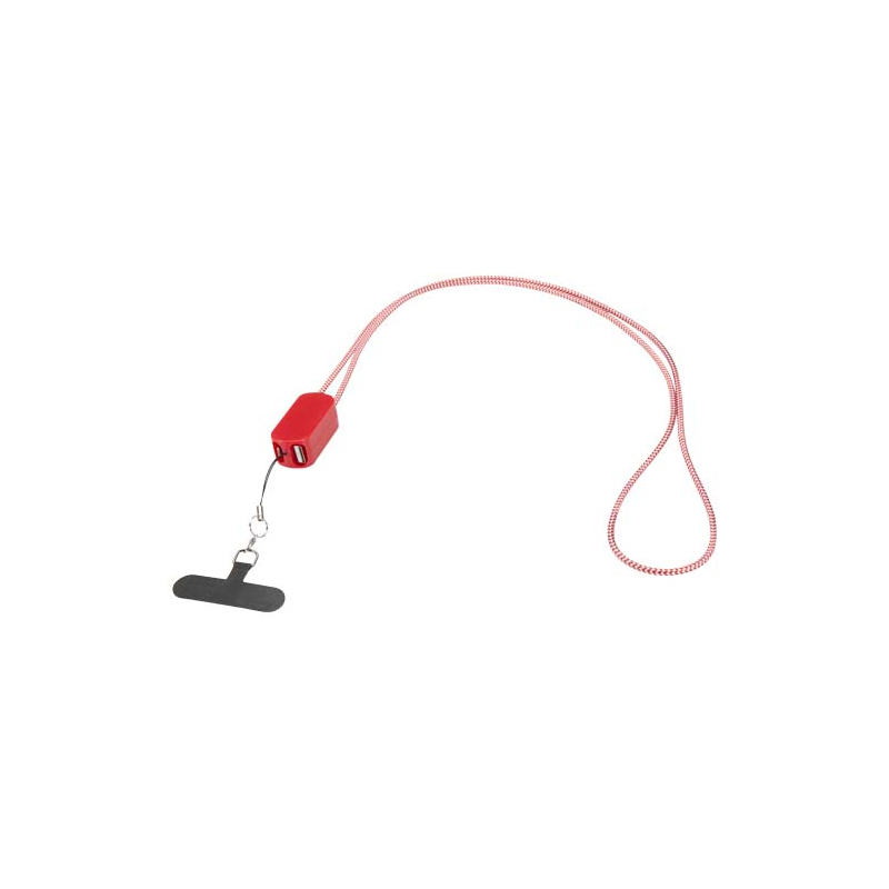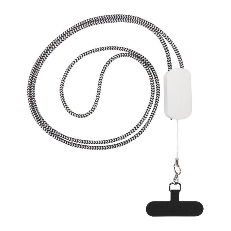 Un cordon smartphone personnalisable en plastique recyclé combinant port mains libres et recharge mobile dans un seul accessoire.
