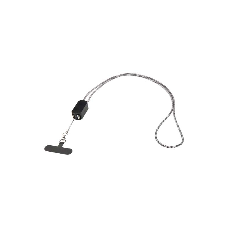 Le cordon est fabriqué en plastique recyclé ABS (Acrylonitrile Butadiène Styrène), un matériau technique couramment utilisé dans les accessoires électroniques pour sa solidité et sa durabilité. L’utilisation de ce plastique recyclé permet d’intégrer une matière réutilisée dans un accessoire conçu pour être manipulé régulièrement.