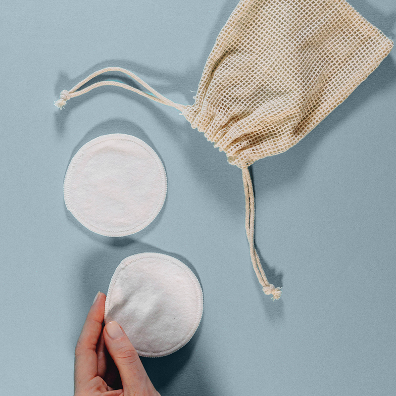 Proposez à vos clients ce set de deux disques démaquillants promotionnels, et leur petit pochon en coton personnalisable.