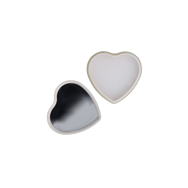 • Étui en forme de cœur en ABS recyclé, finition brillante selon la couleur.