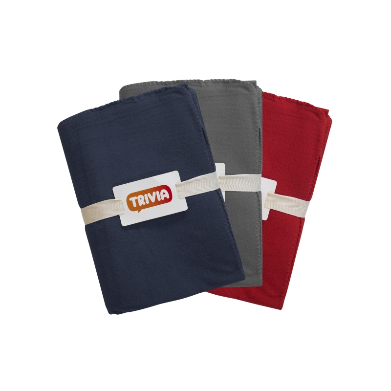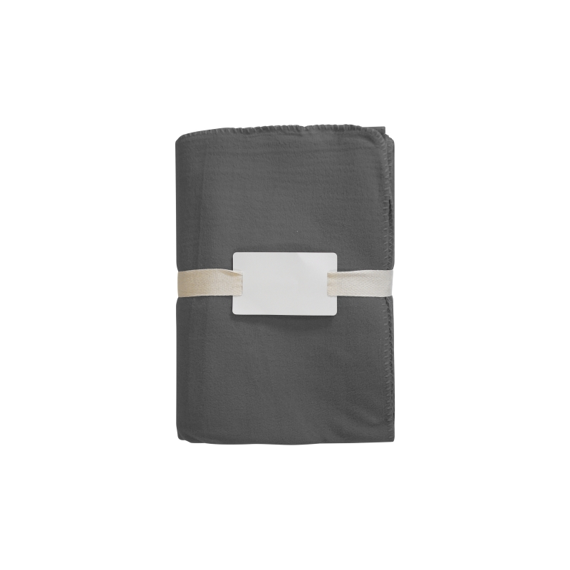 Plaid publicitaire 100% microfibre recyclée et fabriqué en Europe. Possède un sous-ruban en coton et un insert carte. Servez-vous de ce plaid personnalisé pour augmenter votre visibilité en l'offrant à vos clients et collaborateurs !