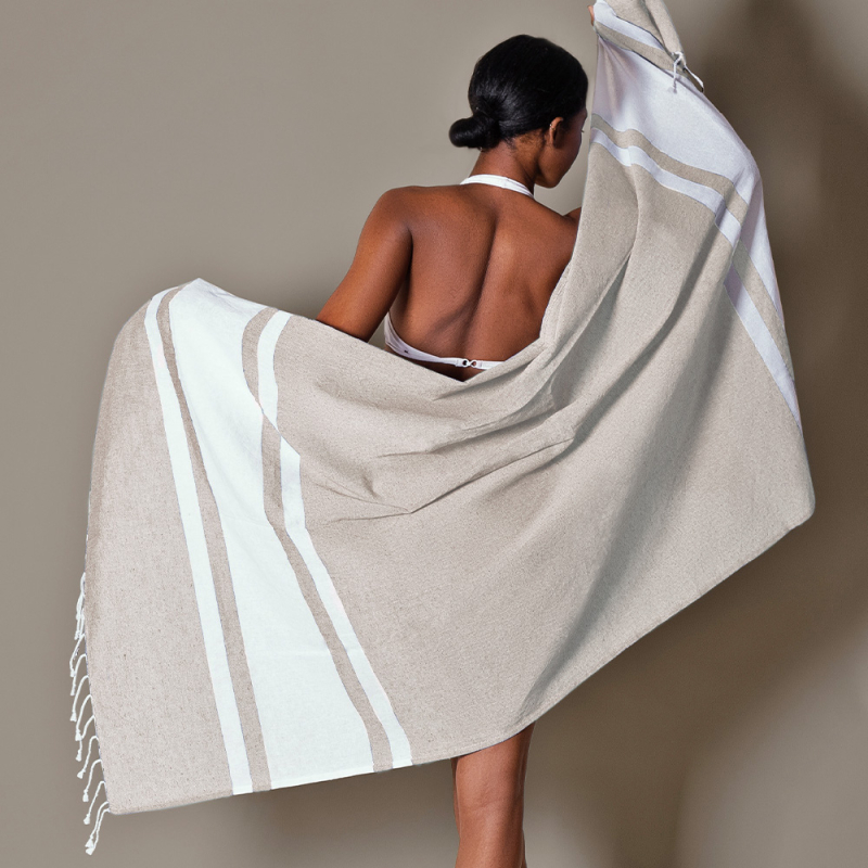 Accessoire tendance de l'été, offrez ce paréo publicitaire en coton recyclé certifié GRS.