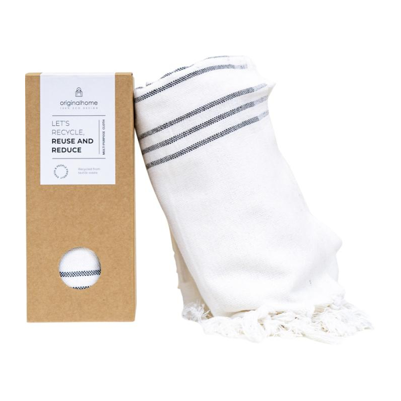 Une fouta personnalisée en textile recyclé conçue pour accompagner vos actions de communication responsable.