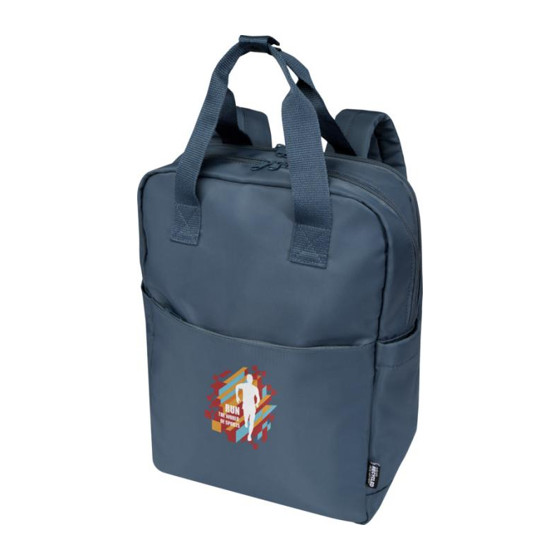 Un sac à dos recyclé 14" personnalisable, idéal pour conjuguer mobilité et communication responsable.