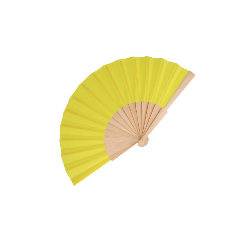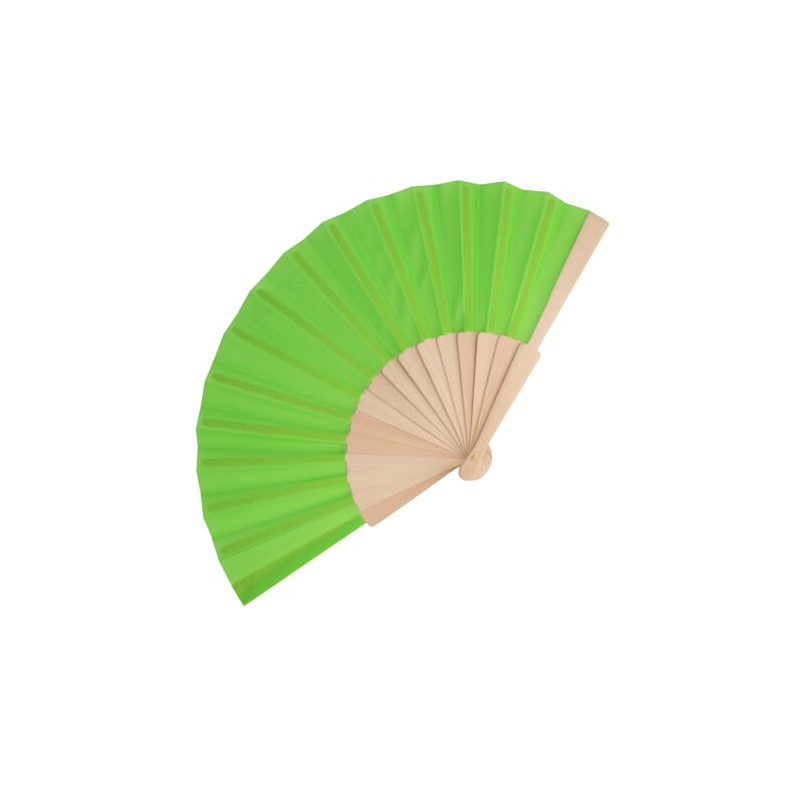 Éventail promotionnel coloré en bois et polyester recyclé