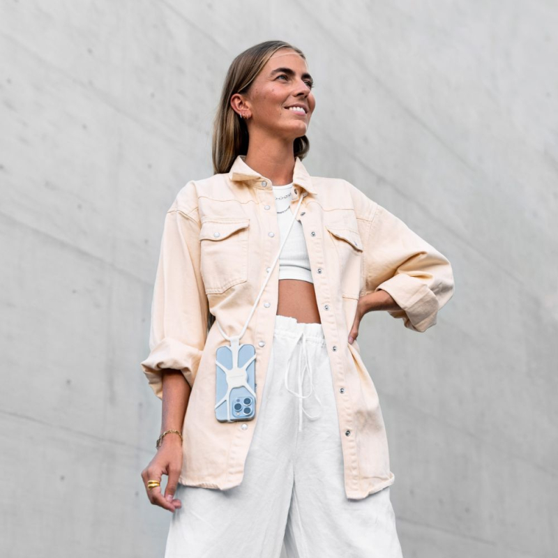 Le système de fixation s’adapte à différents modèles de téléphones et permet un accès complet aux fonctionnalités, sans gêner l’utilisation de l’appareil. Le cordon ajustable s’adapte aux préférences de port, pour un usage continu au fil de la journée.