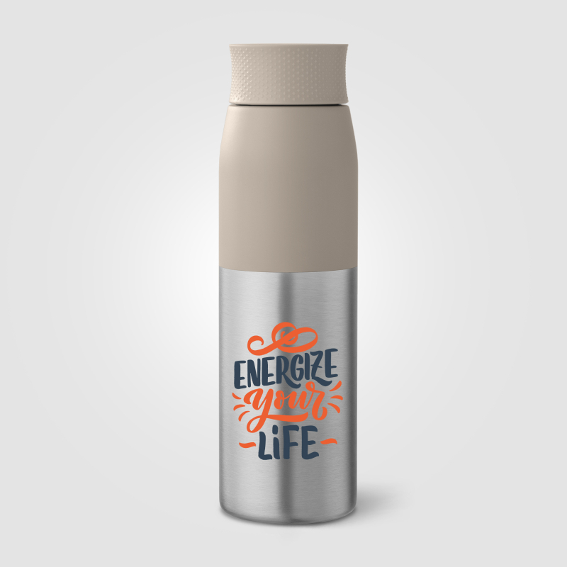 Son couvercle texturé à torsion, doté d’une surface mate peinte, assure une fermeture étanche et un usage confortable au quotidien. Sa finition brossée met en valeur un style à la fois moderne et intemporel, idéal pour accompagner vos moments d’hydratation au bureau comme en déplacement.