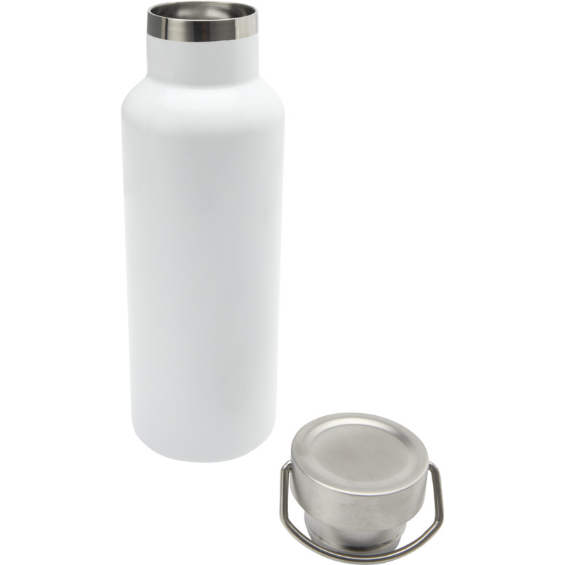 Sa structure en acier inoxydable recyclé certifié RCS repose sur une double paroi isolée sous vide, conçue pour maintenir les boissons froides jusqu’à 24 heures et chaudes jusqu’à 12 heures. Le bouchon à vis en acier inoxydable avec anse assure une prise en main fonctionnelle et une étanchéité adaptée aux usages quotidiens.