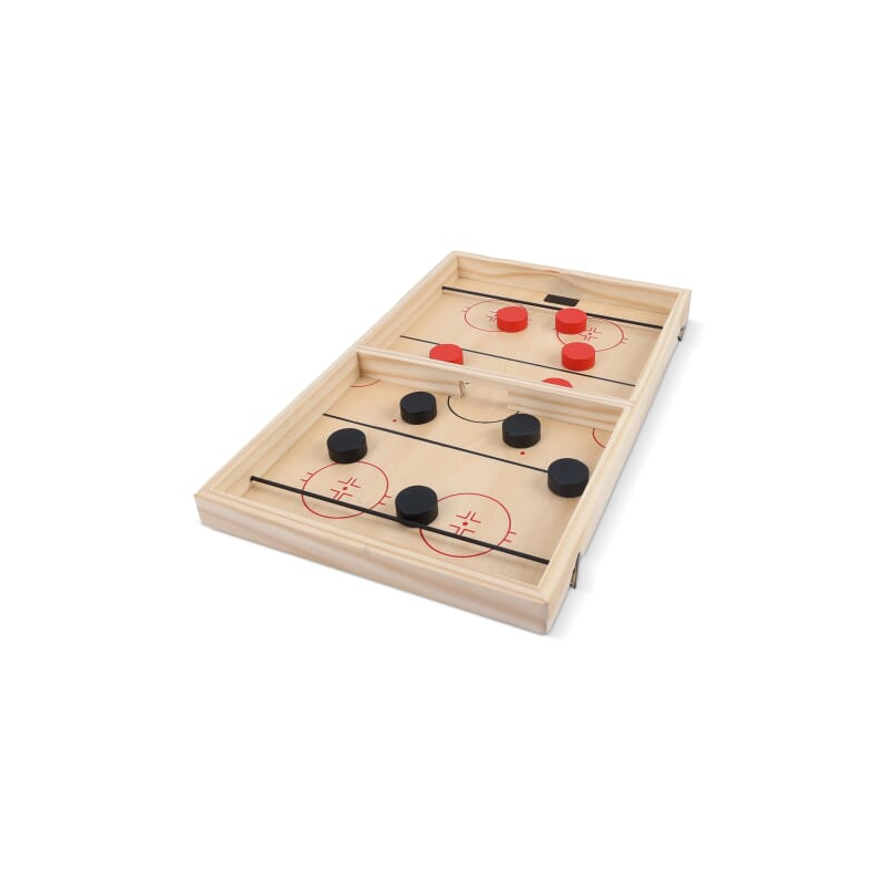Ce modèle de type Sling Puck oppose deux joueurs qui propulsent leurs palets à travers l’ouverture centrale au moyen d’un élastique latéral. La rapidité d’exécution et la précision du geste déterminent le vainqueur, créant une animation rythmée, idéale pour des moments de détente ou des activités d’équipe.