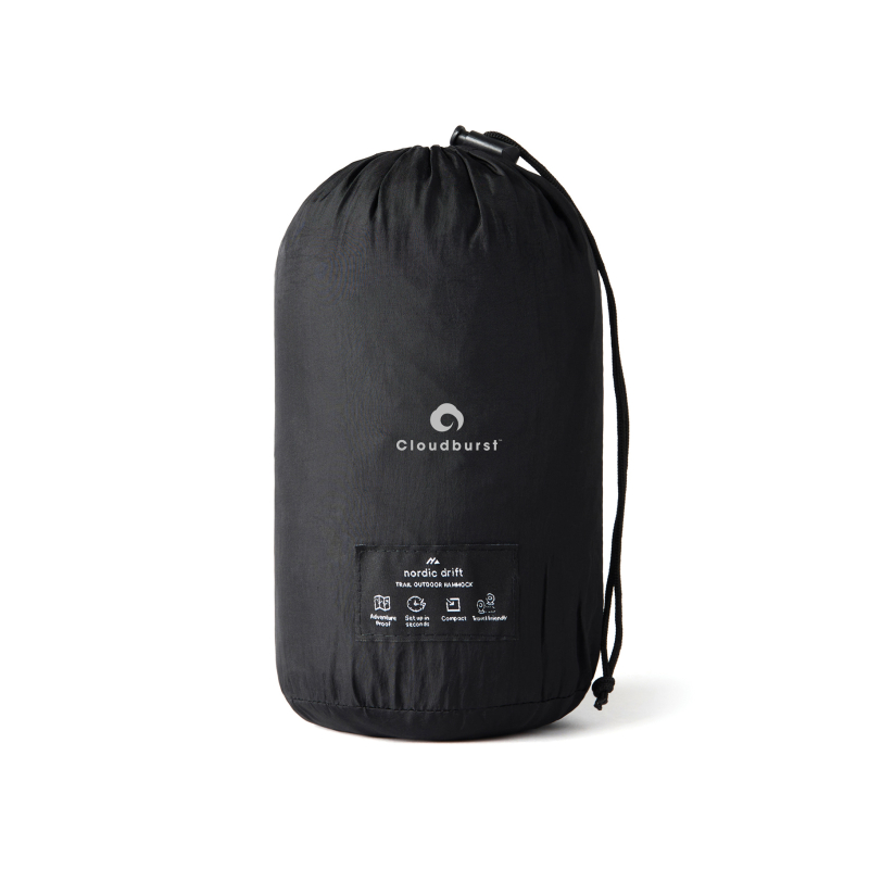 Son usage simple permet une installation rapide dans différents environnements extérieurs. La pochette intégrée, utilisée pour le transport, se transforme en poche latérale une fois le hamac installé, permettant de conserver à portée de main les objets du quotidien lors des temps de pause.