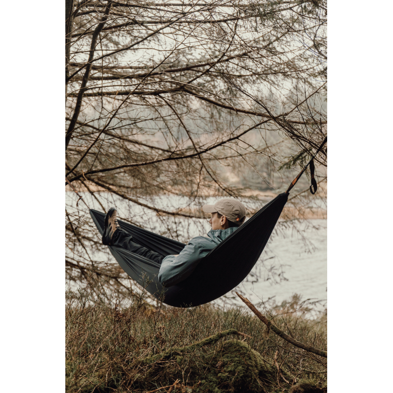 Ce hamac est fabriqué à partir de 44 % de nylon recyclé certifié GRS (Global Recycled Standard garantissant la traçabilité des matières recyclées).
