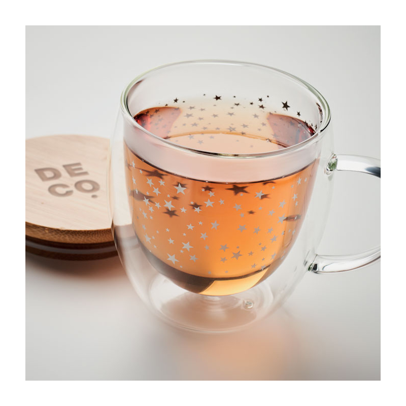Lors de vos moments de pause, plongez dans un univers élégant étoilé grâce à cette tasse en verre à double paroi, offrant la possibilité d'une personnalisation.