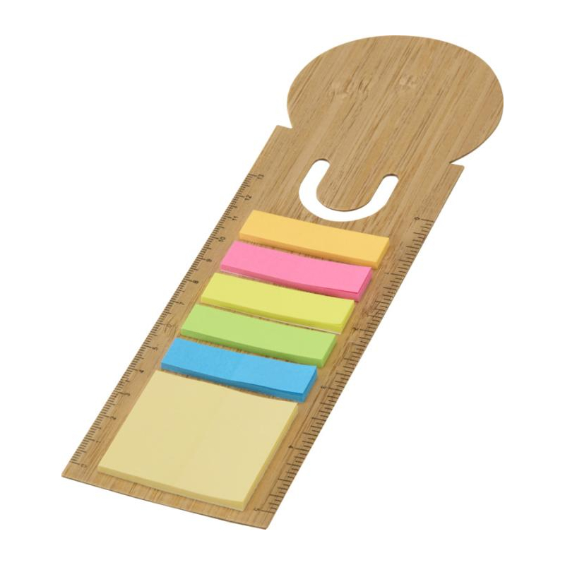 Une règle marque-page avec notes autocollantes publicitaire, compacte et fonctionnelle pour vos campagnes.