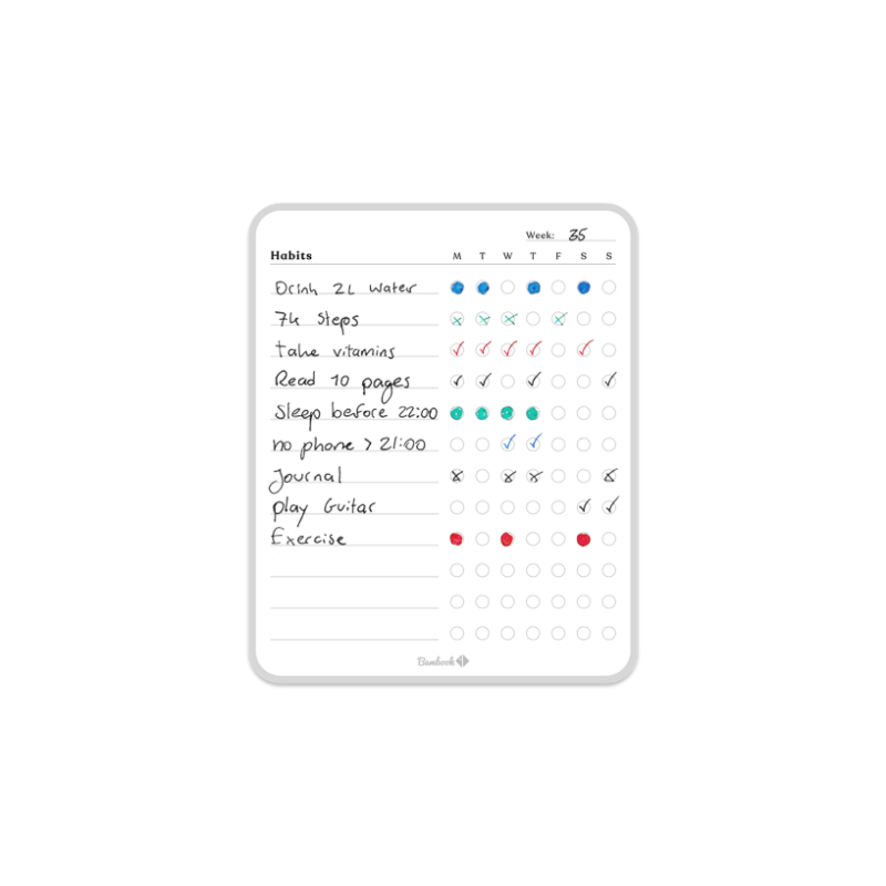 • Type : suivi d’habitudes hebdomadaire adhésif.