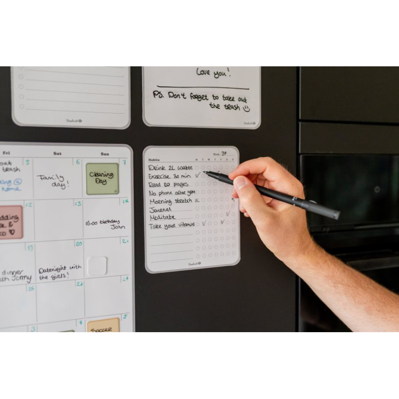 Conçu pour rendre les habitudes visibles semaine après semaine, ce suivi adhésif permet d’organiser et de visualiser les objectifs quotidiens de manière simple et durable. Sa surface effaçable offre une lecture claire des progrès et facilite la régularité.