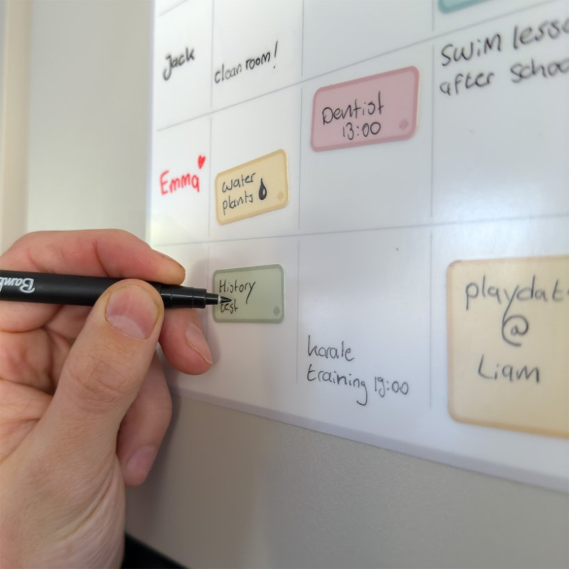 • Type : calendrier hebdomadaire adhésif effaçable.