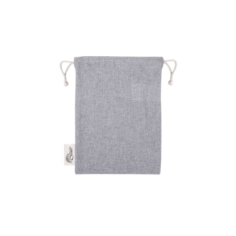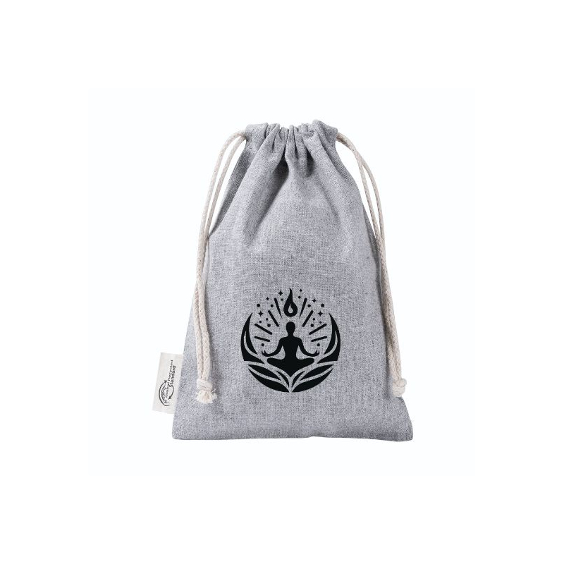 Un sac à cordon personnalisable alliant textile naturel et fibres recyclées pour une présentation soignée et responsable.