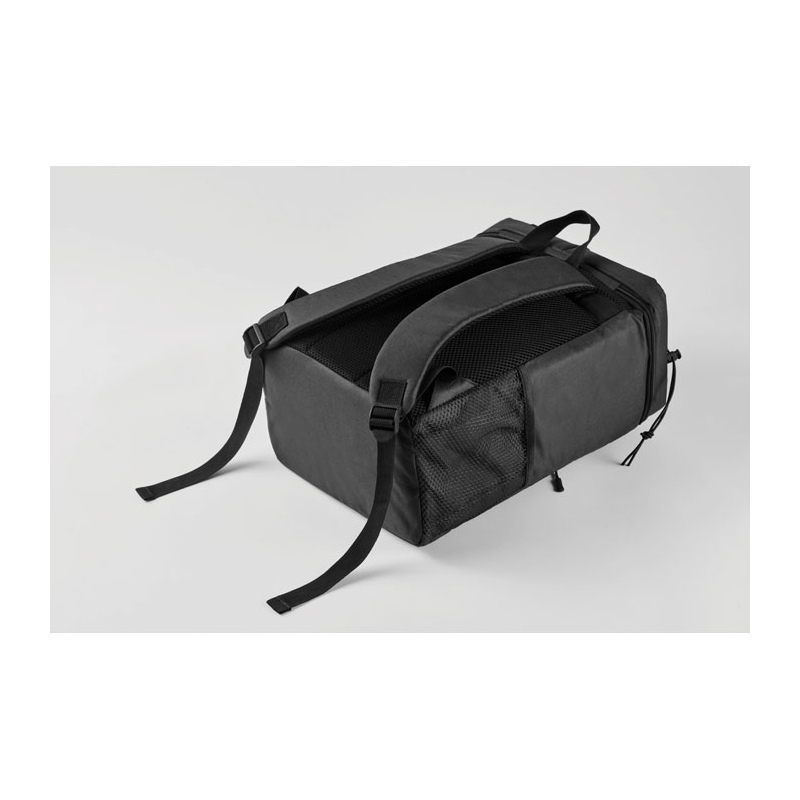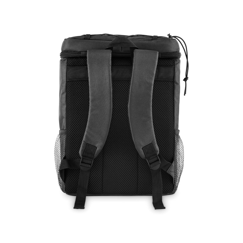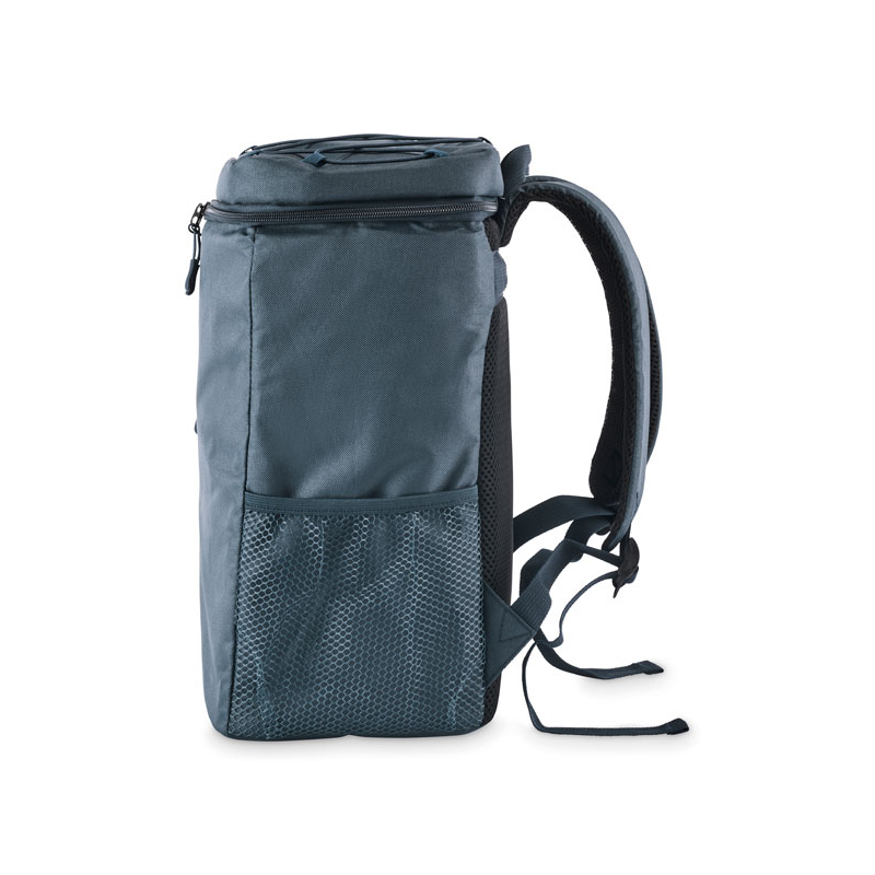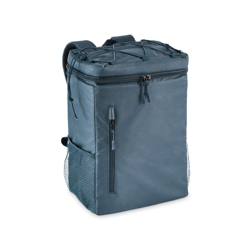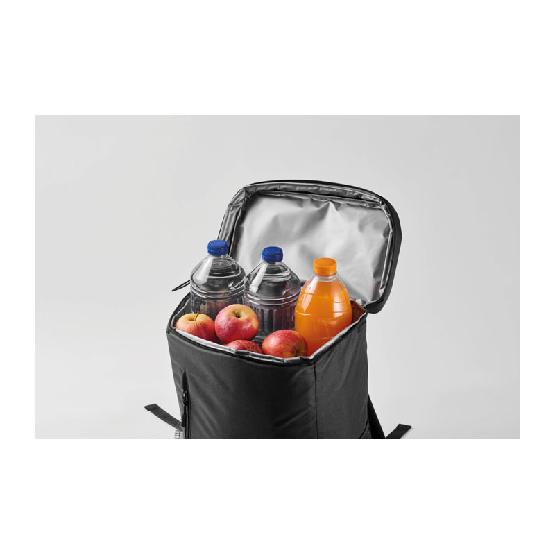 Avec sa capacité de 9 L, ce modèle en polyester 600D RPET permet de transporter boissons et repas lors d’animations outdoor, de séminaires ou de sorties collectives. Il dispose d’une poche frontale zippée et de deux poches latérales en maille pour garder certains accessoires à portée de main.