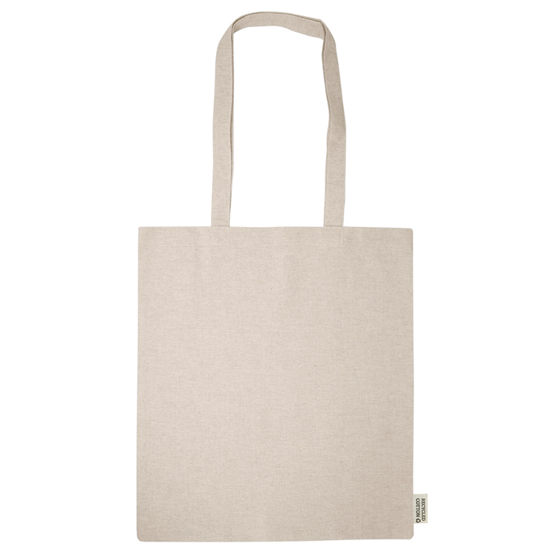 Sac promotionnel en coton recyclé de 140gr/m2. Longues anses. Accordez-le avec une lunch box personnalisée, c'est le combo parfait pour vos clients et collaborateurs !