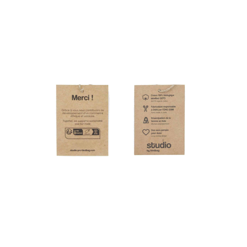 Chaque produit comporte une étiquette intérieure cousue, présentant le projet social associé à sa fabrication.