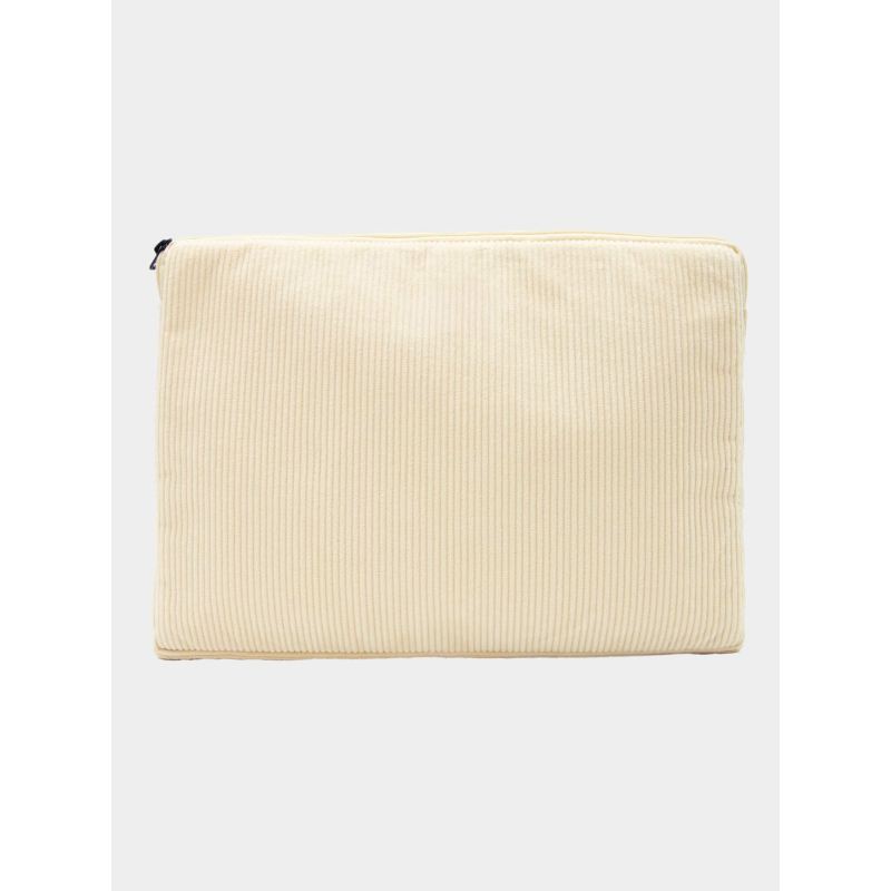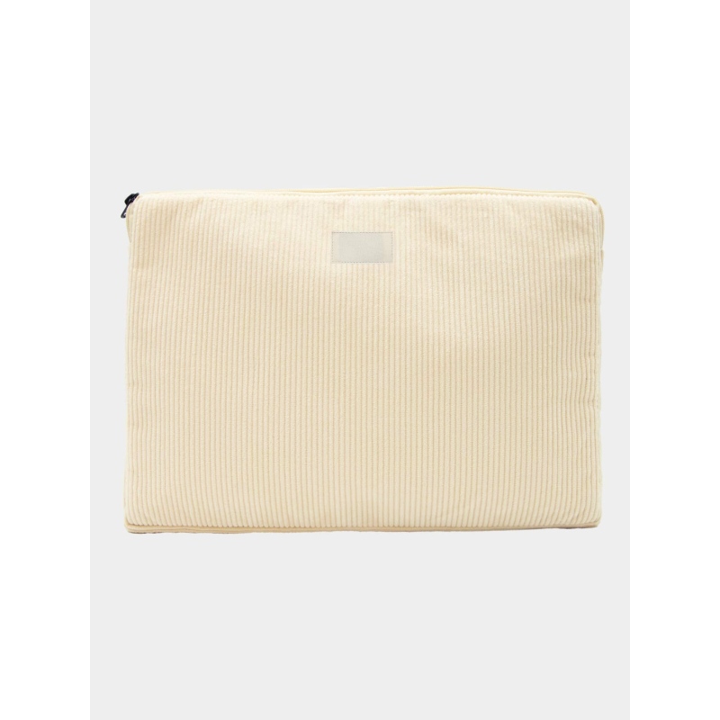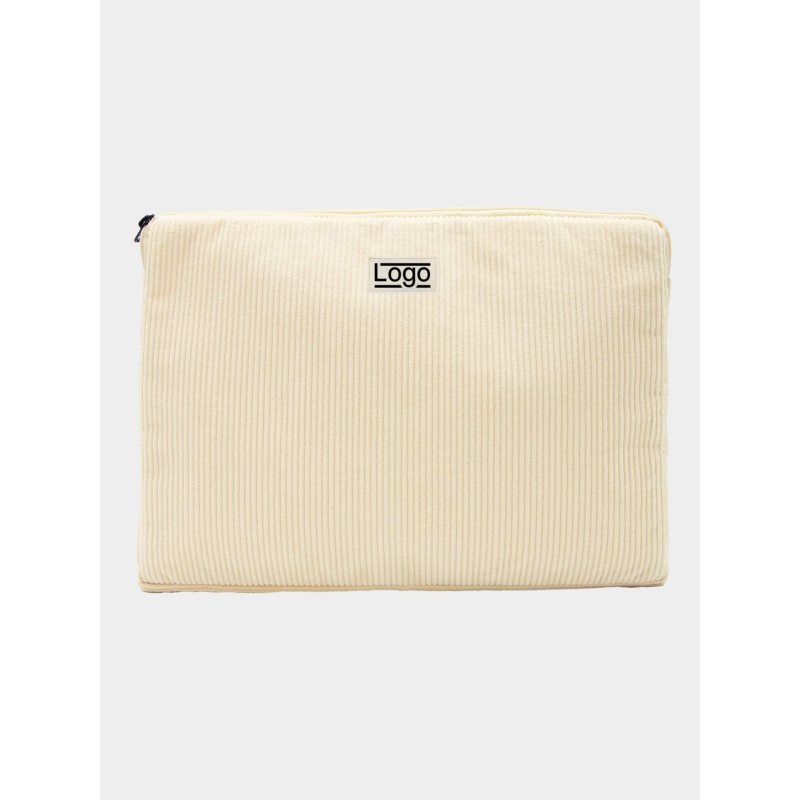 Réalisée en velours côtelé de coton certifié GOTS, elle associe résistance et confort d’usage. Sa doublure intégrant une mousse anti-choc épaisse contribue à protéger efficacement l’ordinateur des chocs du quotidien. La doublure intérieure coloris écru apporte une finition sobre, cohérente avec un objet promotionnel écologique.