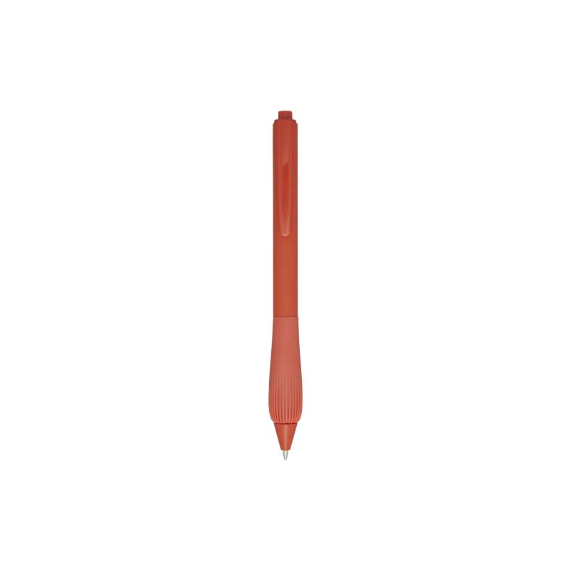 Stylo bille à personnaliser avec votre logo ou le nom de votre structure, offrant une prise en main confortable en plastique recyclé avec corps caoutchouté et grip en TPR.