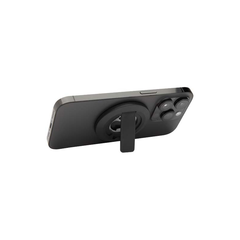 Compacte et ingénieuse, la station Ain se fixe magnétiquement à l’arrière des smartphones compatibles pour un maintien stable et sécurisé.