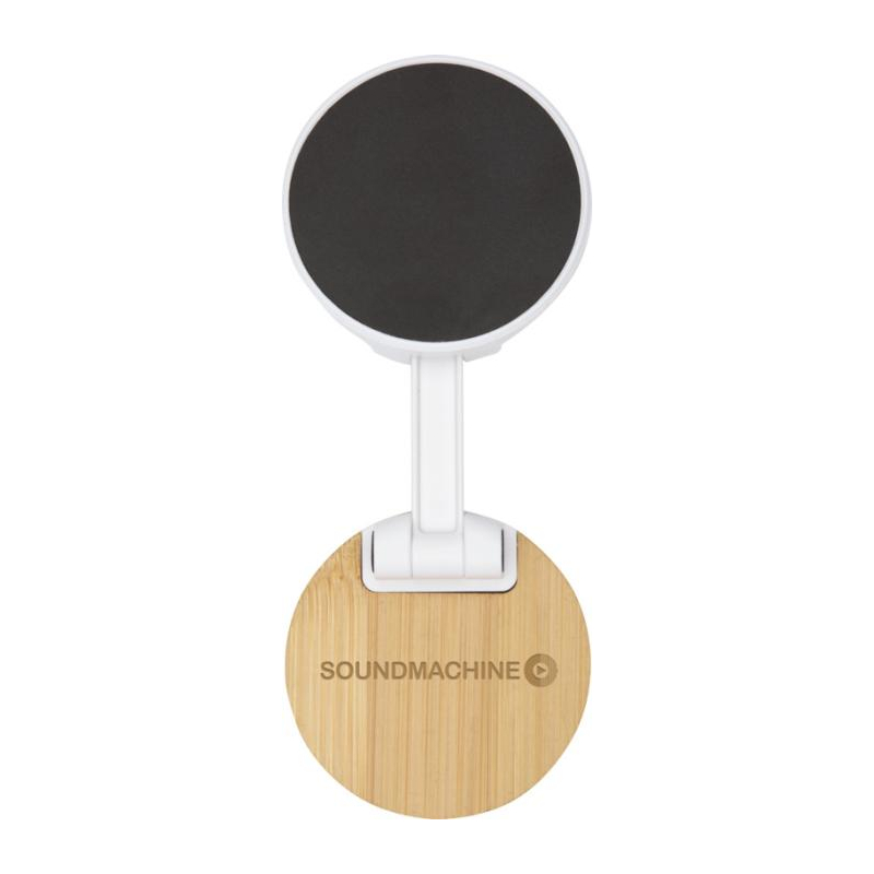 Le modèle Alcor associe le charme du bambou issu de sources durables à la solidité du plastique rABS recyclé. Sa base circulaire et son bras pliable permettent un positionnement stable et ajustable, idéal pour le travail ou la visioconférence.
