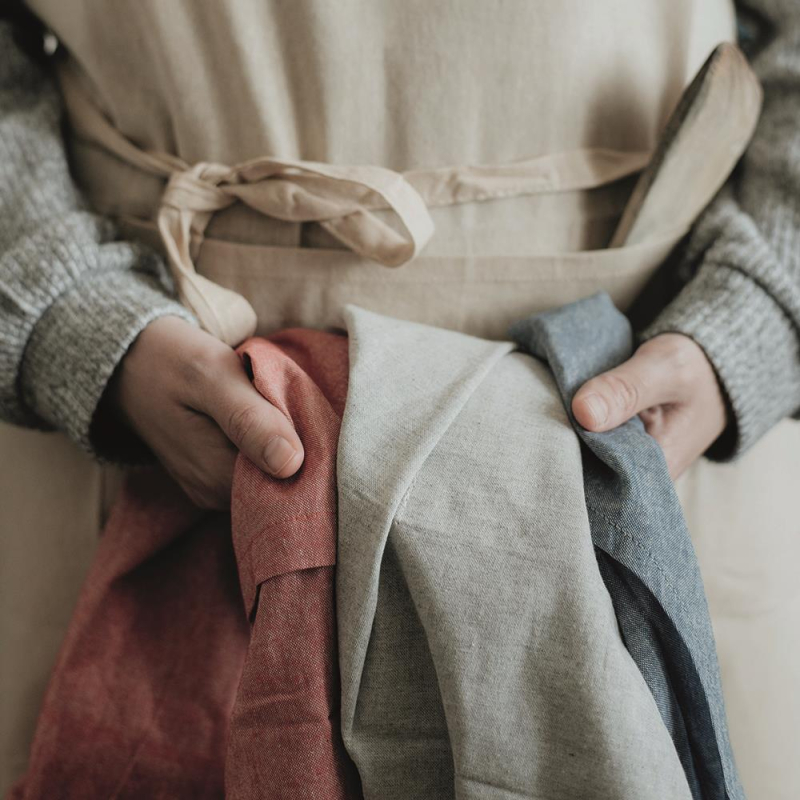 Tablier léger fabriqué en coton recyclé 140g/m² à personnaliser avec votre logo ou le nom de votre établissement.