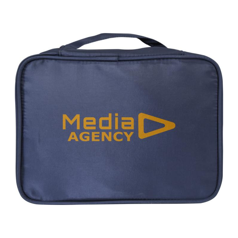 Son textile léger en polyester recyclé certifié GRS et son organisation intérieure compartimentée répondent aux besoins de mobilité des équipes, partenaires ou participants. La poignée supérieure et la fermeture à glissière facilitent la manipulation et l’ouverture au quotidien.