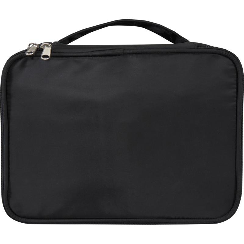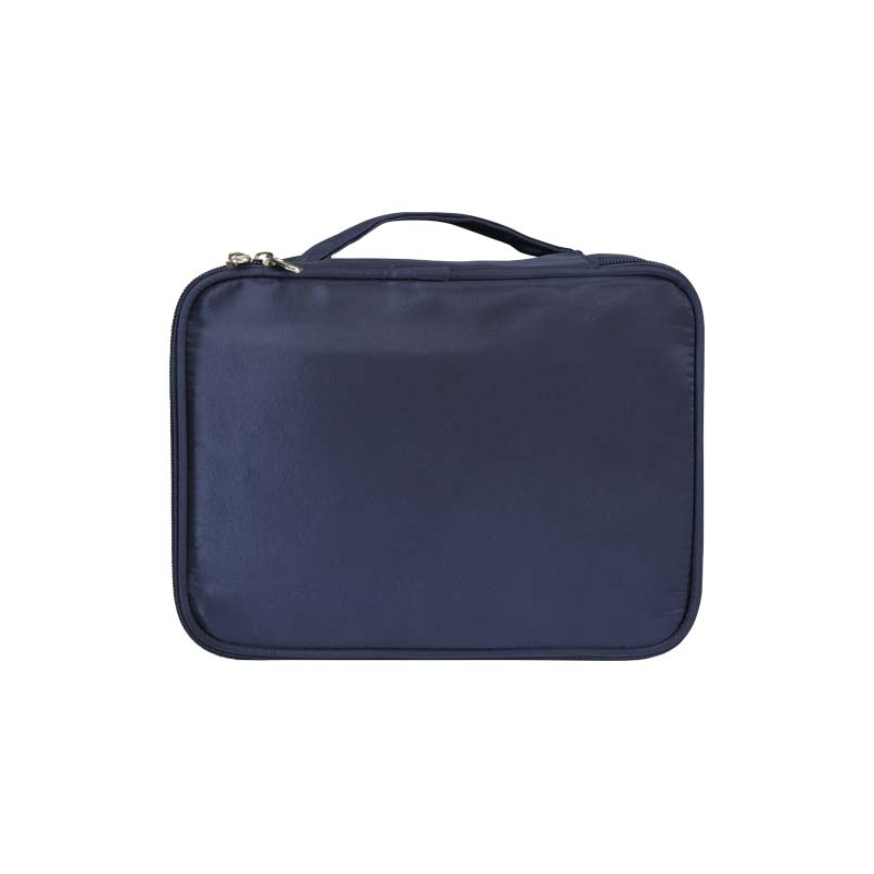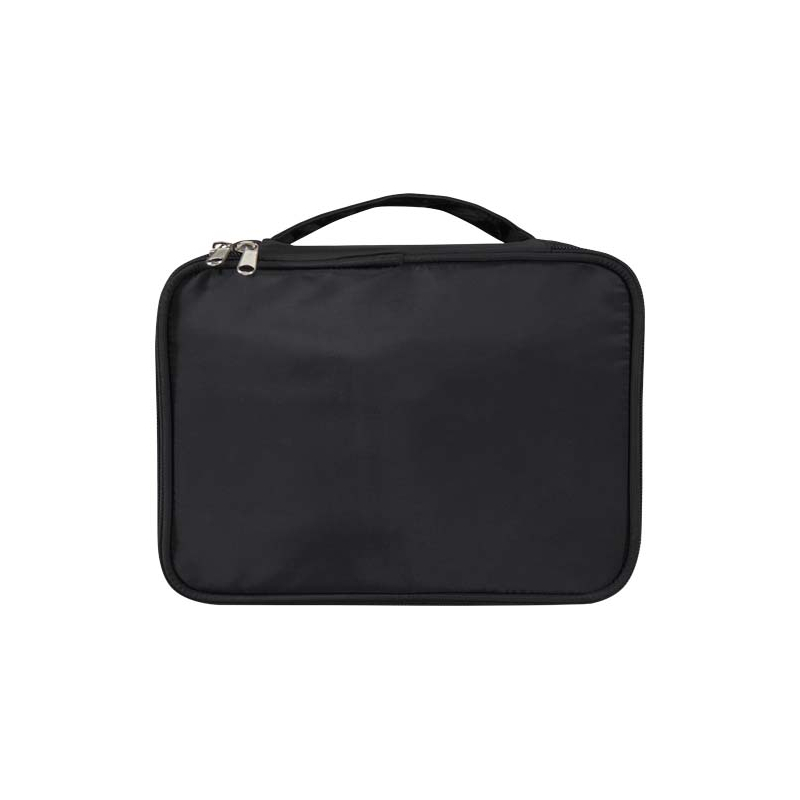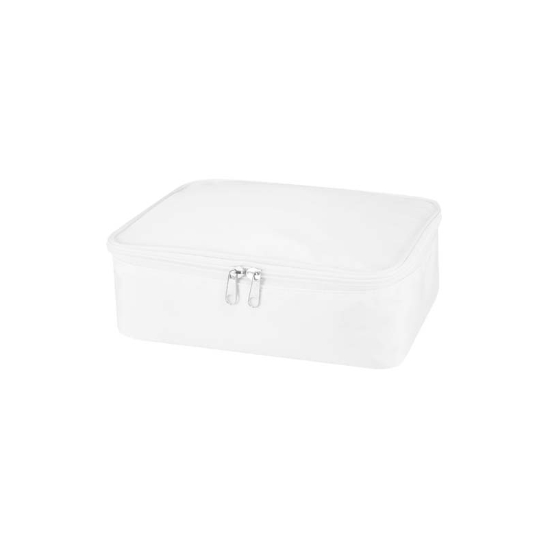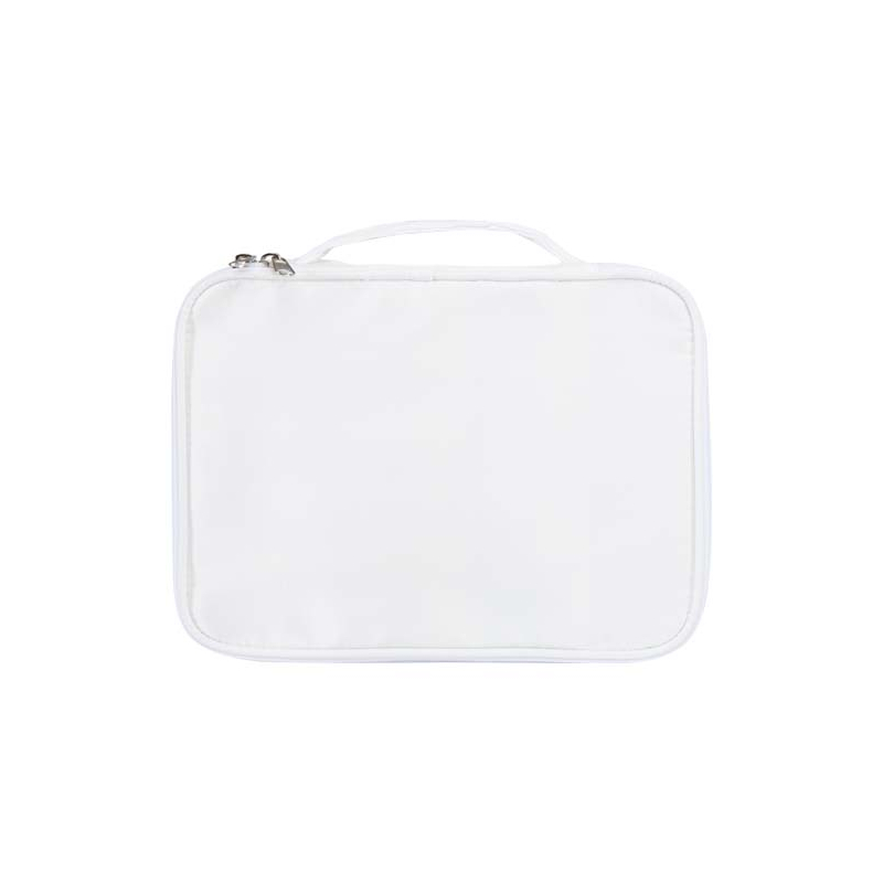 Cette trousse à maquillage promotionnelle structure le rangement des pinceaux, poudriers et produits de soin dans un format compact facile à transporter lors d’un séjour, d’un événement ou d’une dotation. Sa face avant accueille votre identité de manière visible, dans un usage répété et concret.