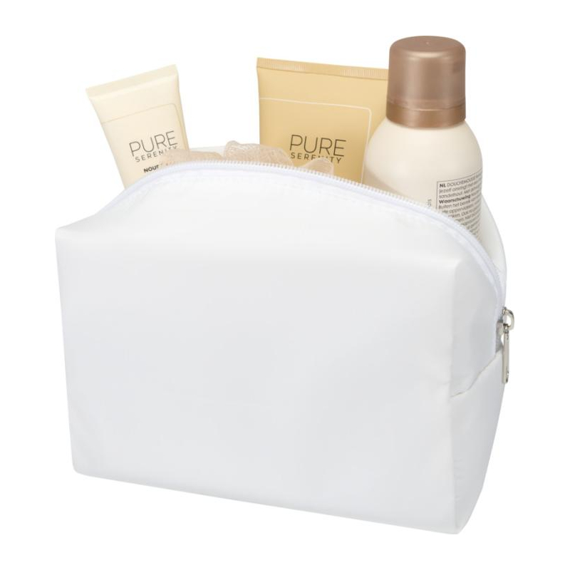 Avec son format 18 x 17 x 9,5 cm, cette trousse de toilette voyage permet de transporter brosse à dents, dentifrice, shampooing et petits accessoires dans un compartiment principal zippé. Distribuée lors d’un séminaire, intégrée à un pack d’accueil ou remise avant un déplacement, elle accompagne concrètement son destinataire tout en laissant votre identité visible sur la face avant.