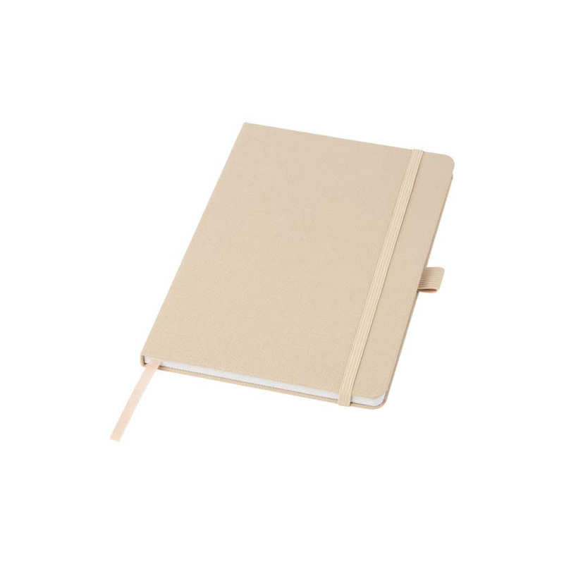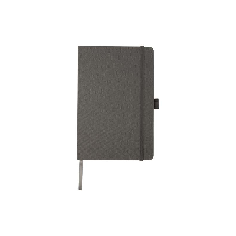 Carnet A5 écologique avec couverture en tissu RPET publicitaire et personnalisable avec votre logo.
