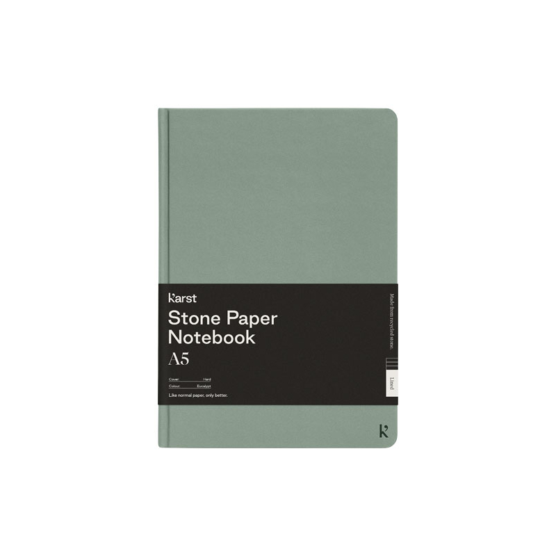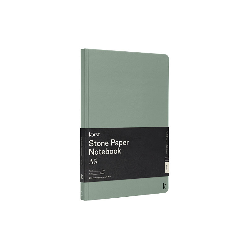 Le carnet promotionnel A5 Karst® à couverture rigide est un best-seller et plaît à tout le monde. La texture lisse des pages et la reliure plate offrent un grand confort et un grand espace d'écriture pour vos notes et vos idées. Personnalisez ce carnet en papier de pierre et ravissez vos clients et collaborateurs en leur offrant.