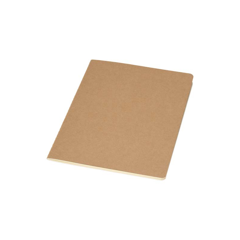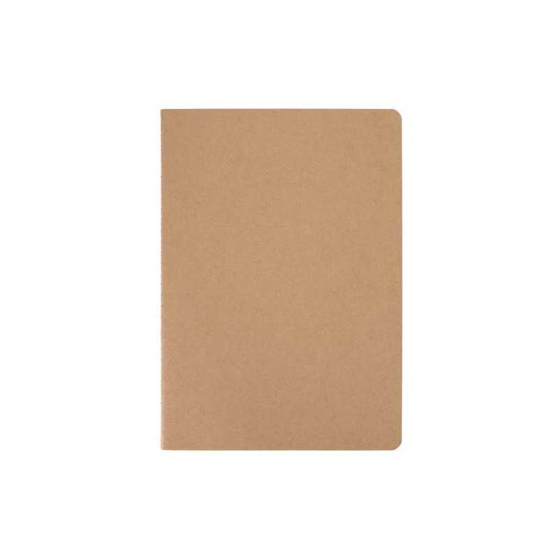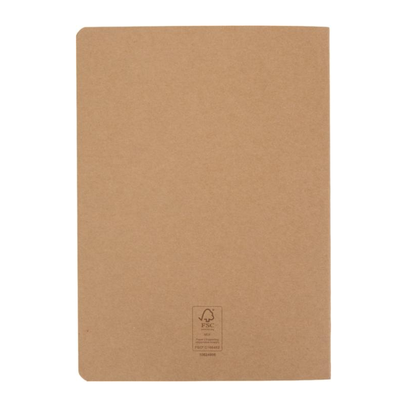 • Couverture souple en carton kraft avec piqûre de dos visible.