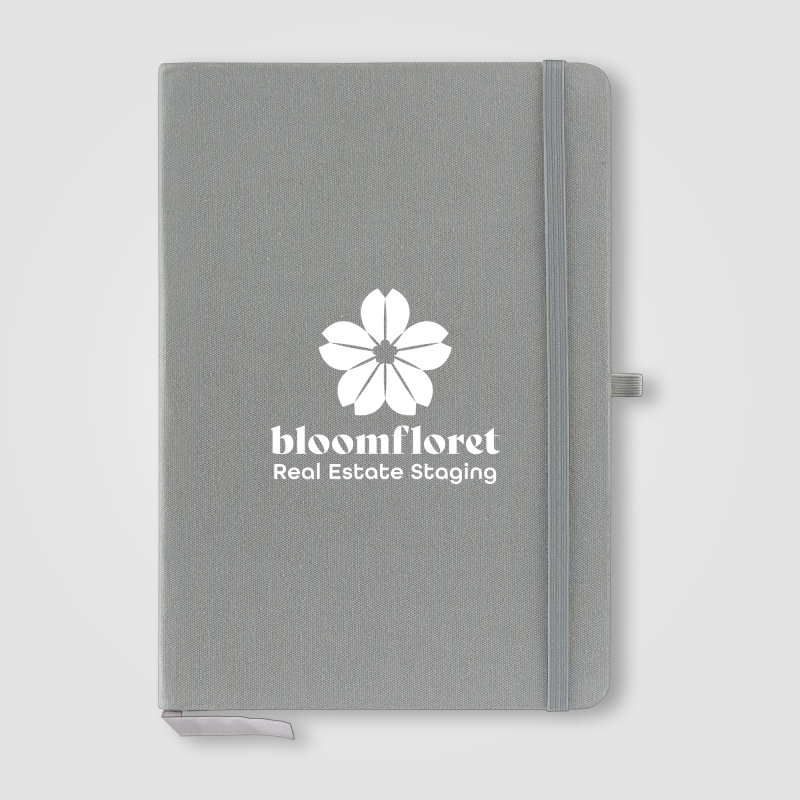Un bloc-notes A5 personnalisable en coton recyclé, idéal pour une communication sobre et durable.